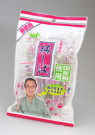 弊社の「梅しば」は国内産の原料を使用し、自社工場で調味加工、包装を行なった、「いつでも」「どこでも」食べられる個包装のカリカリ梅です。