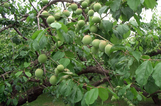 県内の梅林で、中梅の収穫が始まり1週間が経ちました。 本日も、箕郷梅林のあちらこちらでは、生産者の方々が収穫を行っています。 小梅は、カリカリ用の収穫は終了しましたが、梅干用として、完熟に育てている所もあります。 緑色の実が、熟して黄色染まってきています。 ※梅の成長状況は地域等により異なります。